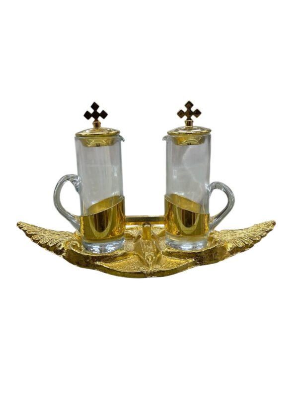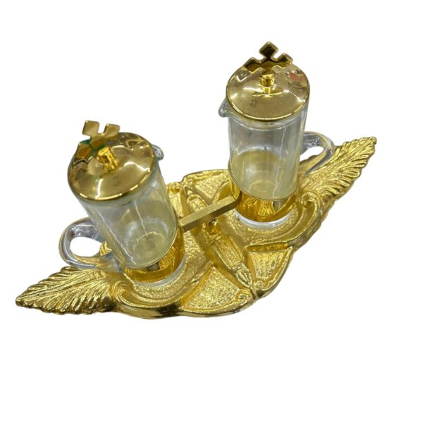 • DIMENSIONI PRECISE: Vassoio misura 24×10 centimetri, ampolle con capacità di 100 cc ciascuna, perfette per uso liturgico
