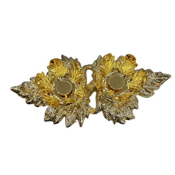 Questo elegante set di ampolle liturgiche è un capolavoro di artigianato religioso, perfetto per le celebrazioni sacre. Il set include due ampolle in vetro cristallino da 100 cc ciascuna, decorate con raffinati elementi in metallo dorato che conferiscono un aspetto maestoso e solenne. Le ampolle sono sormontate da croci decorative e impreziosite da elaborate volute laterali in stile barocco. Il vassoio coordinato, anch’esso in metallo dorato, misura 22×11,5 cm e presenta un design floreale finemente lavorato che completa l’insieme con eleganza. La base delle ampolle è arricchita da un motivo a foglie dorate che si integra armoniosamente con il resto del design. La finitura dorata brillante conferisce al set un aspetto prezioso e degno della sua funzione liturgica. Le ampolle sono facili da maneggiare e pulire, garantendo praticità d’uso durante le celebrazioni. Un oggetto sacro che unisce bellezza estetica e funzionalità, ideale per chiese e cappelle che cercano accessori liturgici di alta qualità.