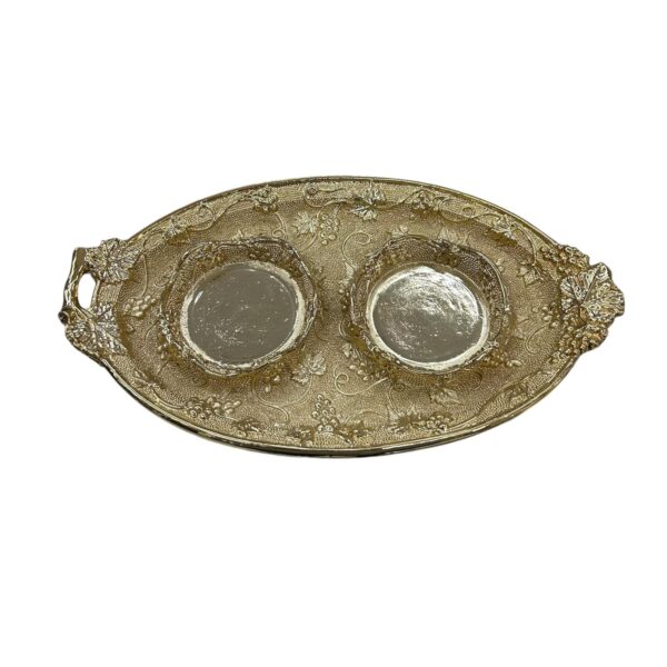 - DIMENSIONI PRATICHE: Vassoio ovale finemente lavorato con supporti dedicati per le ampolle, ideale per un uso liturgico sicuro e stabile