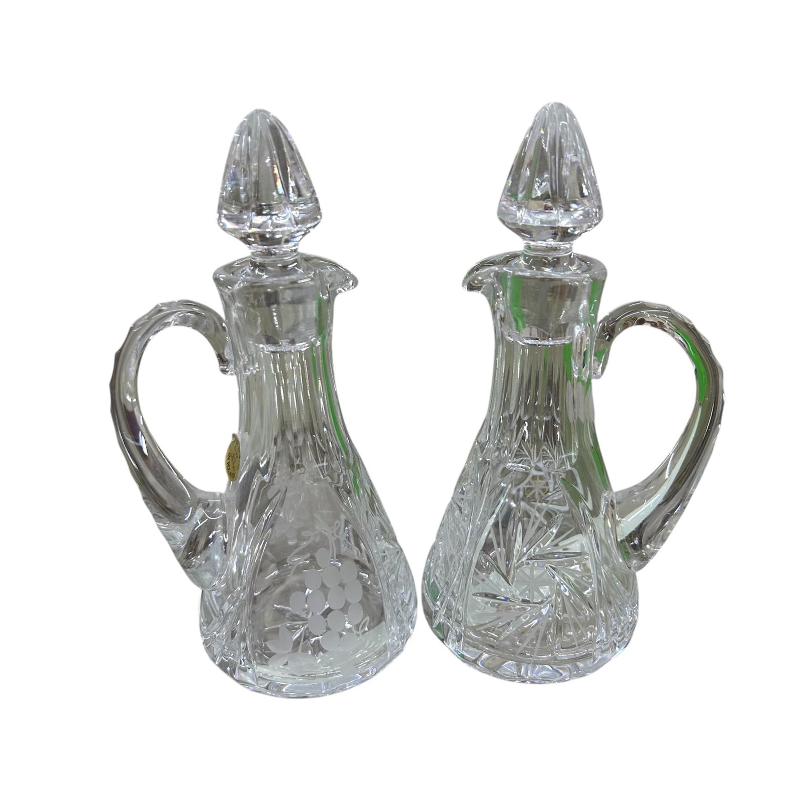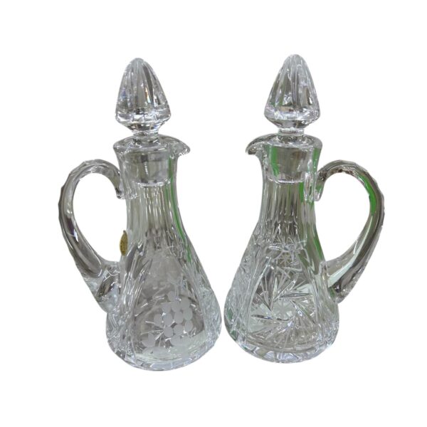 - DESIGN ELEGANTE: Set di ampolle in cristallo finemente lavorato con decorazioni geometriche e manici ergonomici per una presa sicura