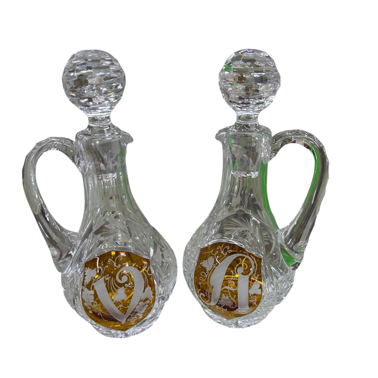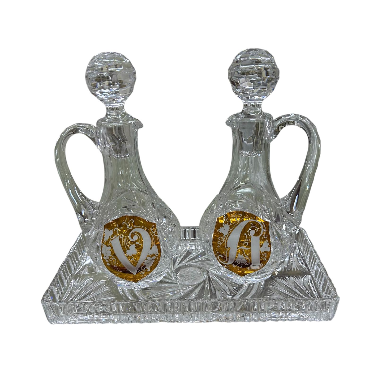- SET COMPLETO: Set di ampolle liturgiche in cristallo 110 cc finemente lavorato, comprensivo di vassoio decorativo coordinato