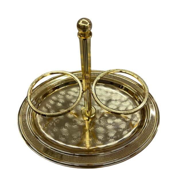 - VASSOIO COORDINATO: Base in metallo dorato con motivi incisi e supporto centrale per una disposizione stabile e sicura delle ampolline
