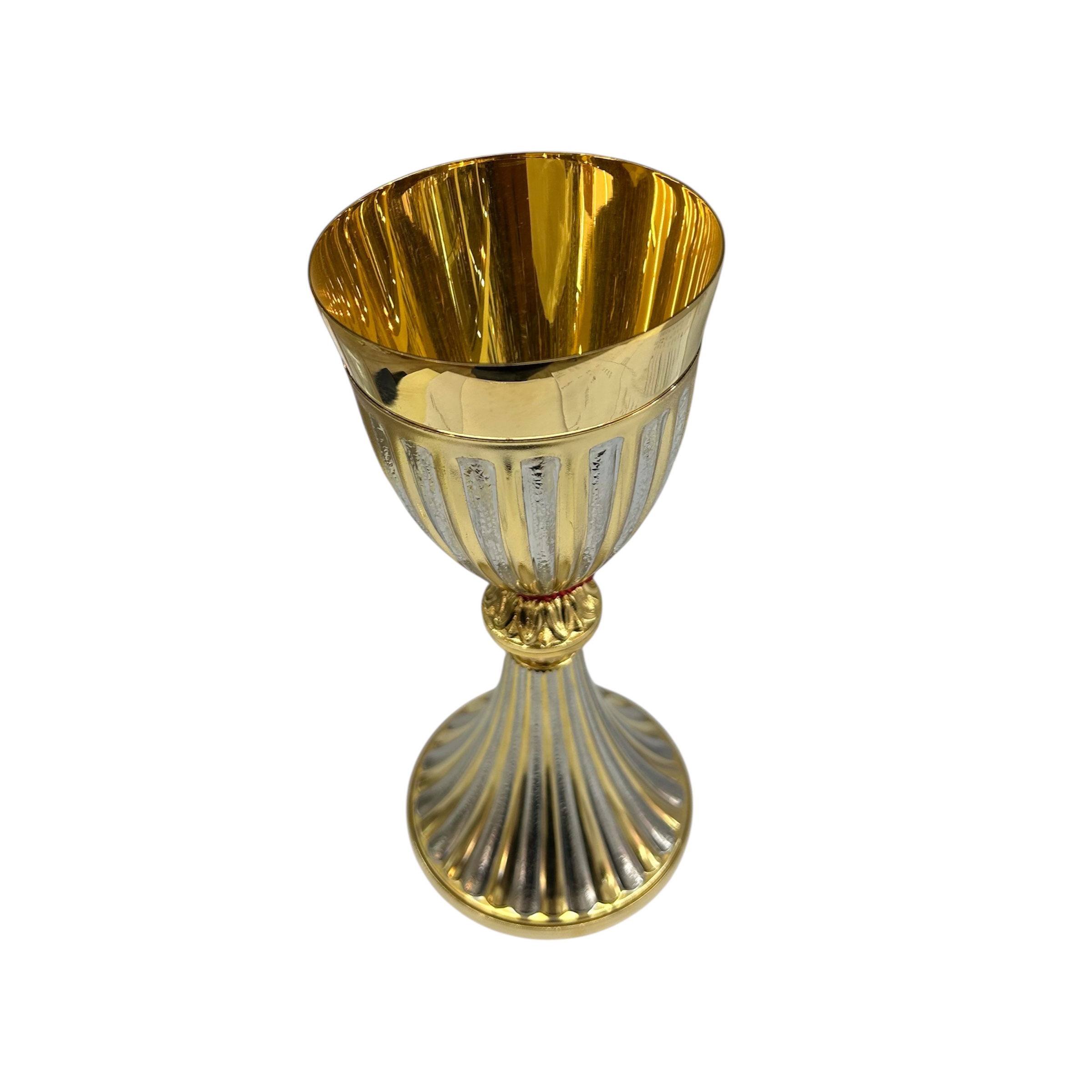 - DESIGN ELEGANTE: Calice liturgico con finitura dorata e decorazione rigata distintiva sulla base e sulla coppa, perfetto per cerimonie religiose