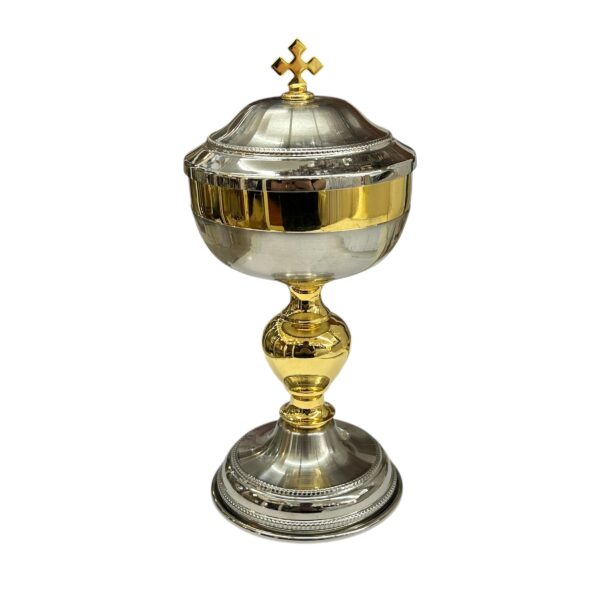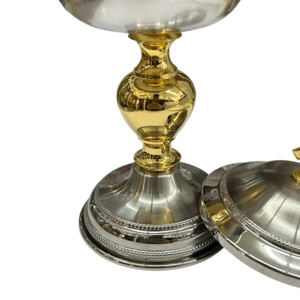 - DESIGN ELEGANTE: Pisside liturgica realizzata in nichel satinato con coppa dorata, perfetta per uso cerimoniale e liturgico