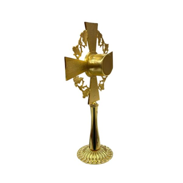 - DESIGN ELEGANTE: Reliquiario dorato con croce decorativa, impreziosito da motivi a uva in stile tradizionale religioso