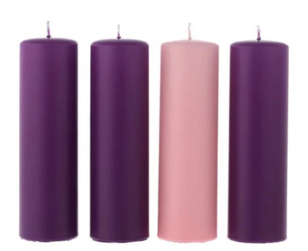Ceri per Corona dell’Avvento realizzati in raffinata cera italiana e inscatolati. La confezione comprende tre candele di colore viola ed una candela di colore rosa.