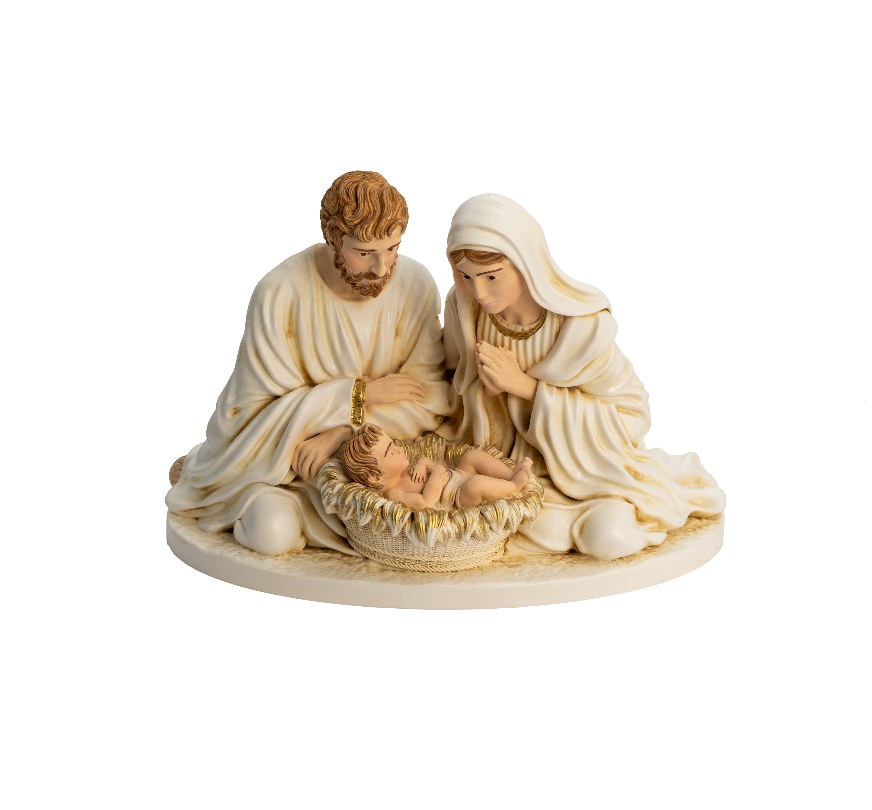 sacra famiglia in resina dipinta a mano di varie dimensioni