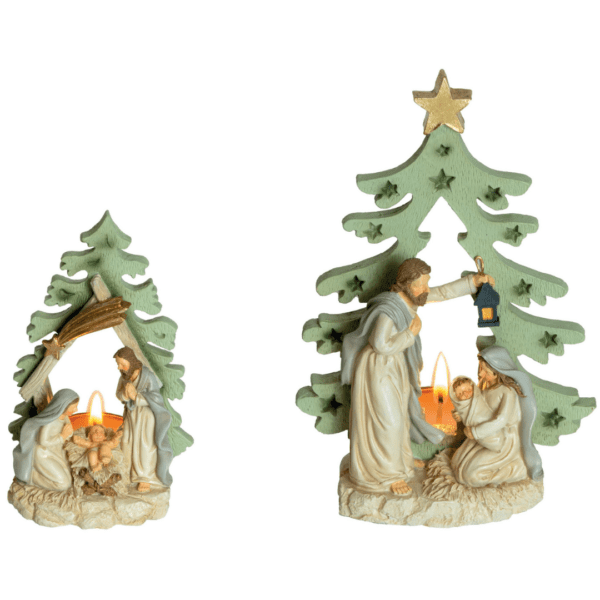 Portacandela sacra famiglia e albero dipinta a mano da 12 e 18 cm