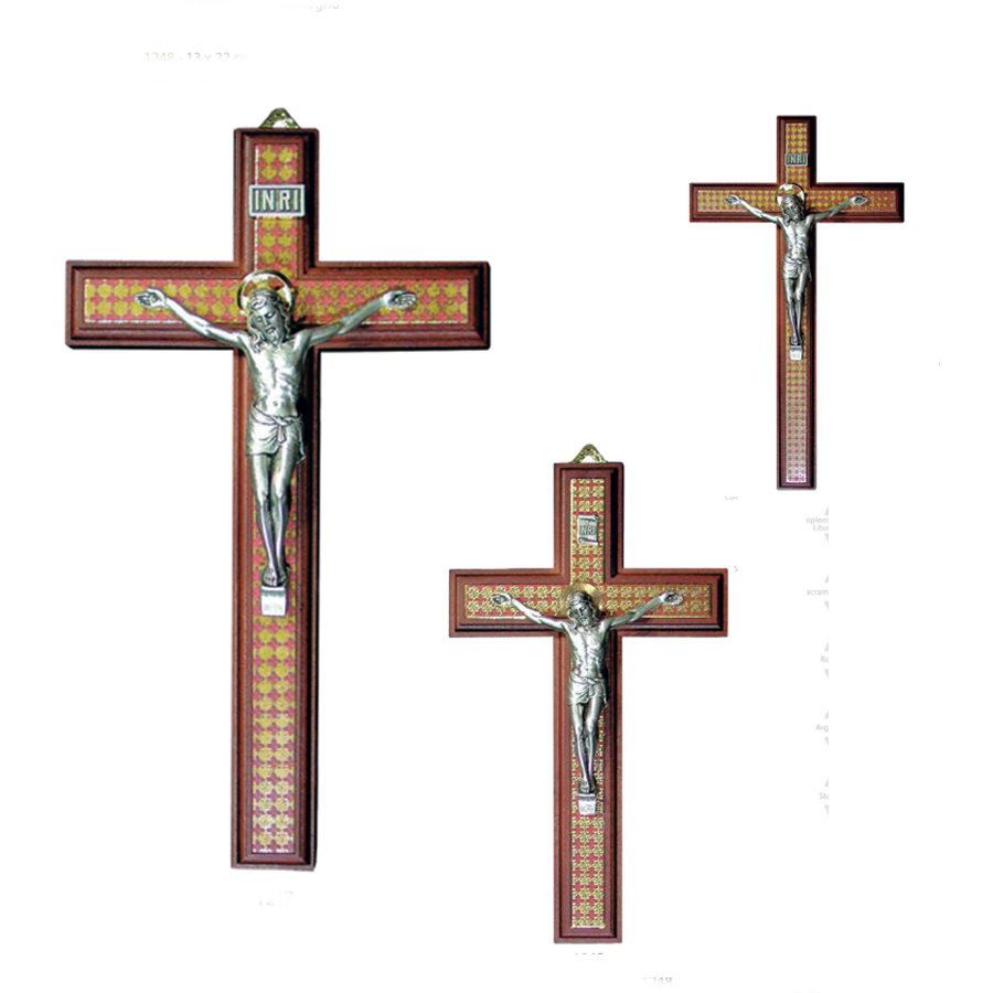 Questo magnifico crocifisso decorativo combina eleganza e tradizione in un’opera d’arte sacra perfetta per qualsiasi ambiente. Realizzato con polimero di alta qualità che ricrea splendidamente l’effetto del legno naturale, il crocifisso presenta un corpo in metallo finemente lavorato che aggiunge un elemento di pregio e durevolezza. La croce è impreziosita da dettagli decorativi in stile classico e dall’iscrizione INRI nella parte superiore. Il design armonioso unisce elementi tradizionali a una realizzazione moderna, creando un pezzo decorativo che si adatta perfettamente sia in ambienti domestici che in spazi di preghiera. Le dimensioni lo rendono ideale per essere appeso in qualsiasi stanza, mentre i materiali utilizzati garantiscono una lunga durata nel tempo mantenendo inalterata la loro bellezza. La finitura accurata e i dettagli minuziosi testimoniano l’attenzione artigianale nella realizzazione di questo oggetto sacro.