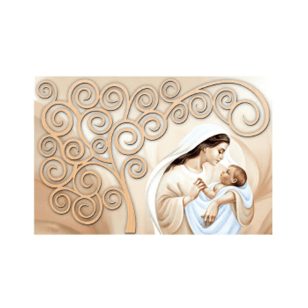 Tela con effetto dipinto e profilo da 2,5 cm con applicazione “albero della vita” in legno