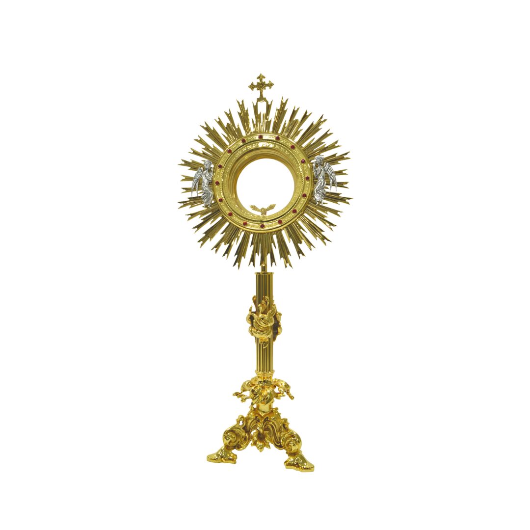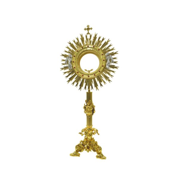 Ostensorio ostia magna H 80 cm Teca diametro 16 cm con pietre preziose