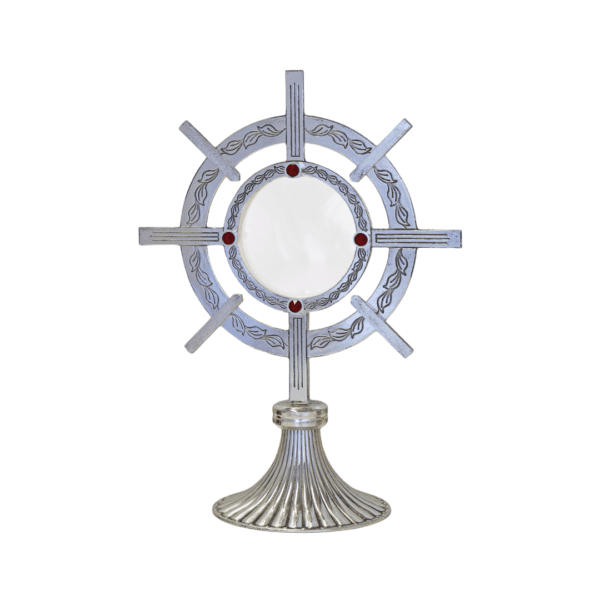 Teca con raggiera incisa e intagliata con perle e raggetti e base a infusione