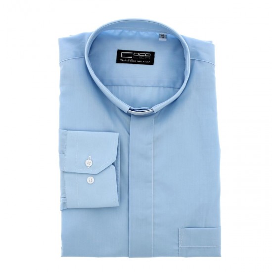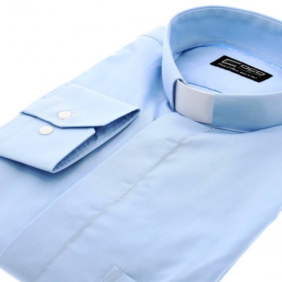 Camicia clergy celeste, piacevolezza estetica ed estremo comfort si unisco in un connubio perfetto nella camicia manica lunga in misto cotone confezionata con ricercato tessuto italiano. La massima cura per i particolari, il colletto clergy in polietilene, i bottoni madreperlati in tinta, i polsini classici la rendono un capo raffinato di ottima vestibilità e resistente ai lavaggi frequenti. Il tessuto conserva la naturale morbidezza al tatto per lungo tempo.