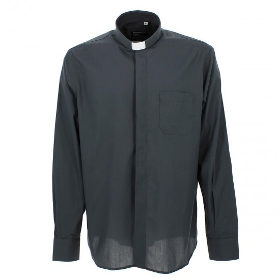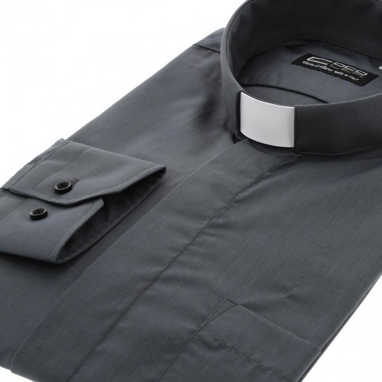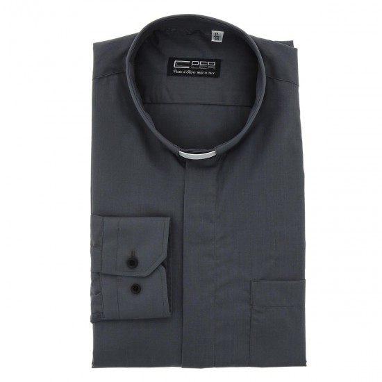 Camicia clergy grigio scuro, piacevolezza estetica ed estremo comfort si unisco in un connubio perfetto nella camicia manica lunga in misto cotone confezionata con ricercato tessuto italiano. La massima cura per i particolari, il colletto clergy in polietilene, i bottoni madreperlati in tinta, i polsini classici la rendono un capo raffinato di ottima vestibilità e resistente ai lavaggi frequenti. Il tessuto conserva la naturale morbidezza al tatto per lungo tempo.