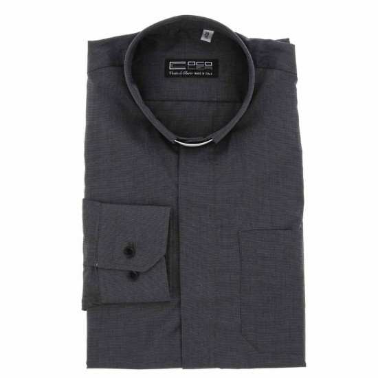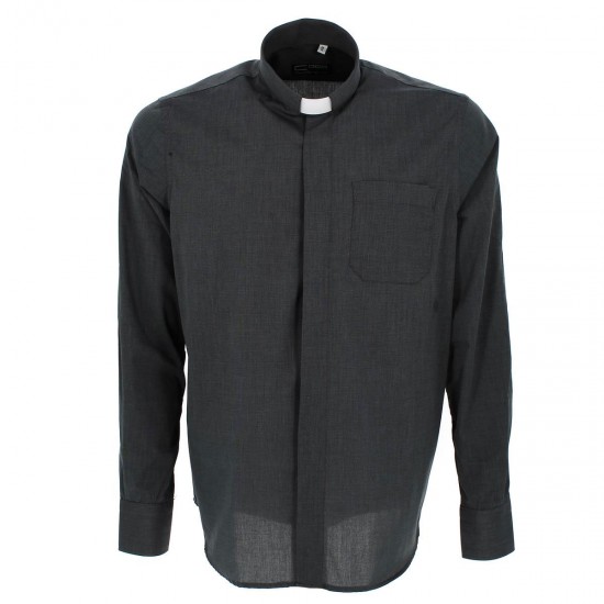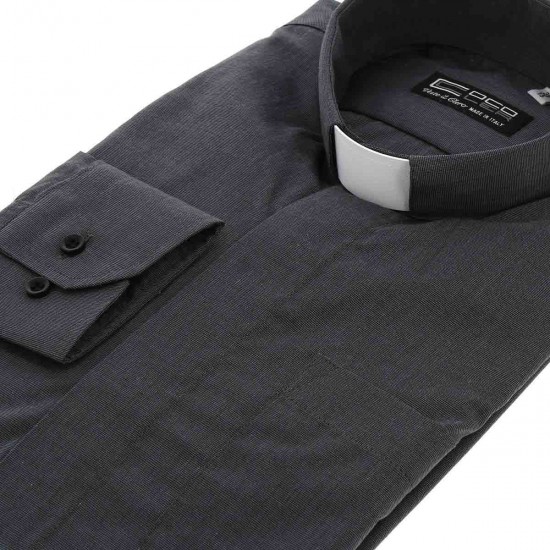 Camicia clergyman in cotone 100% fil a fil, grigio scuro, a manica lunga.