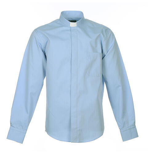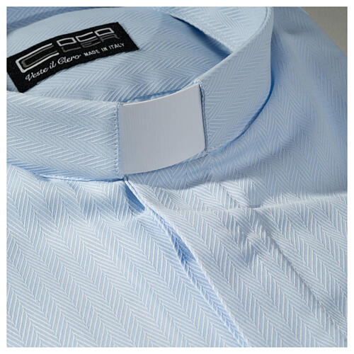 Camicia clergy spigato celeste Cococler manica lunga misto cotone.