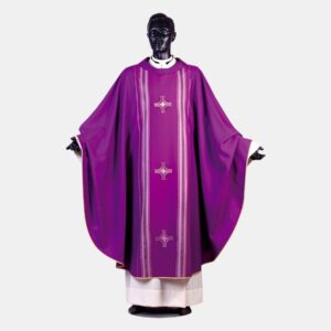Casula realizzata con i simboli dei Quattro Evangelisti: l’Angelo (Matteo), il Leone (Marco), il Bue (Luca) e l’Aquila (Giovanni).