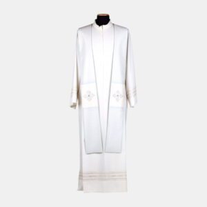 Stola per sacerdote, con tessuto rigato in lana e seta ed indeformabile interno per garantirne forma e durata nel tempo.
